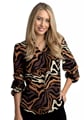 Dámská halenka 1205_04 značky HAJDAN je výrazným kouskem, který okouzlí svým originálním vzorem. Tento model nabízí relaxovaný střih, jenž zajišťuje pohodlí po celý den a zároveň působí elegantně díky výstřihu do V. Dlouhé rukávy s mírným nabíráním na ramenou a zakončením do manžet podtrhují ženský vzhled.