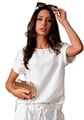 Dámská halenka 1230_01 značky HAJDAN je symbolem ležérní elegance, která vyniká svou jednoduchostí a smyslem pro detail. Vyrobena z vysoce kvalitní viskózy s jemnou texturou nabízí mimořádný komfort i během celého dne. Lehký materiál příjemně chladí a umožňuje pokožce dýchat, což oceníte zejména v teplejších měsících. Krátké rukávy s decentním ohrnutím dodávají modelu uvolněný charakter, zatímco kulatý výstřih podtrhuje ženskost outfitu. Tato halenka bez vzoru se snadno kombinuje jak s elegantními kalhotami, tak i volnočasovými kousky – stane se tak univerzálním základem Vašeho šatníku.