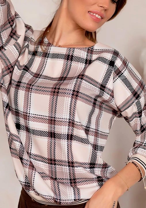 Dámská halenka 1237_31 značky HAJDAN přináší elegantní spojení klasického kostkovaného vzoru a moderního střihu, který ocení každá žena hledající styl i pohodlí. Lehký materiál z mikrovlákna je příjemný na dotek a poskytuje pocit lehkosti po celý den. Halenka má 3/4 rukáv, což ji činí ideální volbou pro jarní i podzimní dny, kdy potřebujete univerzální kousek do svého šatníku. Kulatý výstřih působí jemně a umožňuje snadné kombinování s oblíbenými doplňky..