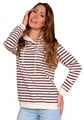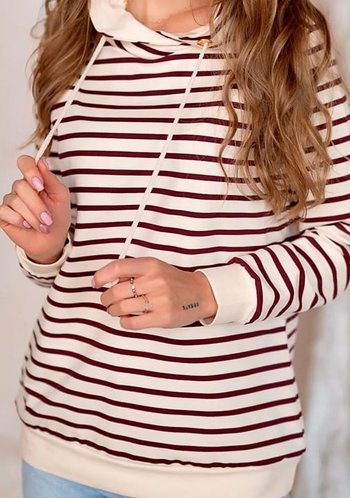 Dámská mikina 1244_03 značky HAJDAN přináší do Vašeho šatníku spojení elegance a pohodlí. Světlý základ s výraznými vínovými pruhy vytváří výrazný, ale vkusný vzhled, který se snadno kombinuje s džínami i legínami. Měkký materiál z bavlny s příměsí elastanu je příjemný na dotek a poskytuje volnost pohybu po celý den. Praktická kapuce se stahovacími šňůrkami chrání před větrem i v chladnějším počasím, zatímco pružné manžety drží rukávy přesně tam, kde mají být.