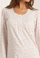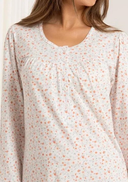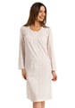Dámská noční košile 015/52 značky REGINA představuje spojení elegance a pohodlí, které si zamilujete při každém večerním odpočinku. Tento model nabízí volný střih s dlouhými rukávy a jemným kulatým výstřihem, který doplňují decentní knoflíky pro snadné oblékání. Materiál ze 100% bavlny zaručuje maximální komfort během spánku i relaxace doma. Díky lehké a prodyšné tkanině se budete cítit svěže po celou noc.