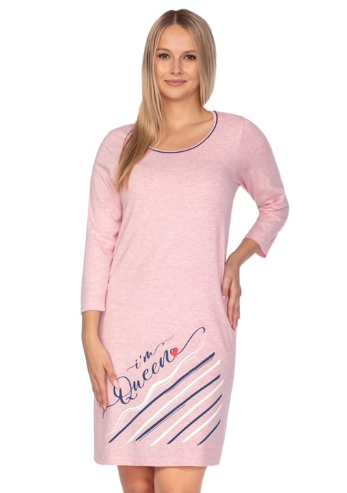 Dámská noční košile s dlouhým rukávem 118/33 Regina. Jednobarevná noční košile je s obrázkem vlnek a nápisem ´im Queen´. Košile je ušitá z kvalitní měkké bavlny, která poskytuje maximální komfort při nošení.