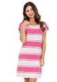 Dámská noční košile 170/61 značky REGINA je dokonalou volbou pro ženy, které si přejí spojit styl s pohodlím. Tento model zaujme svým svěžím pruhovaným designem v odstínech růžové, bílé a šedé vytvářejí hravý a elegantní vzhled. Lehký materiál příjemně obepíná postavu, zatímco relaxovaný střih, kulatý výstřih a krátké rukávy zajišťují maximální komfort během celého večera i noci. Košile je vyrobena ze 100% bavlny, což znamená jemnost na dotek i vysokou prodyšnost – ideální řešení pro teplé letní dny nebo klidné domácí chvíle.