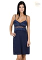 Dámská noční košile s úzkými ramínky je zdobená širokou květinovou krajkou pod prsy a okolo výstřihu. Na prsou je noční košile ušita z jemného saténu doplněna mašličkou.
