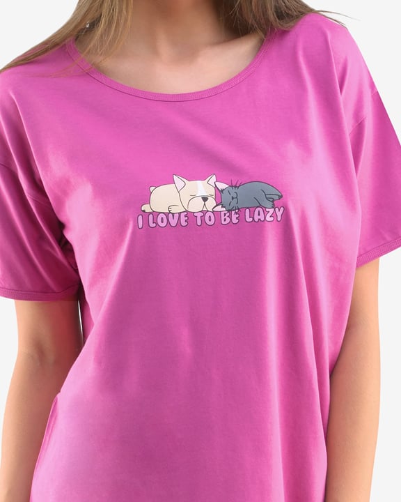 Dámská noční košile krátký rukáv GINA 19102P je dámské maxitriko s krátkým rukávem. Triko je jednobarevné s větším solitérem.