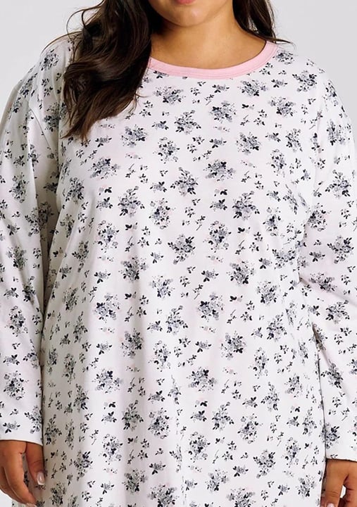 Dámské noční košile Martina 3467 značky TARO představuje dokonalou kombinaci elegance a pohodlí pro každodenní domácí pohodu. Tento model zaujme svým jemným květinovým vzorem na bílém podkladu, který působí svěže a žensky. Měkký materiál ze 100% bavlny je příjemný na dotek, zajišťuje výbornou prodyšnost i komfort během celého večera i noci. Volnější střih s dlouhými rukávy a kulatým výstřihem umožňuje volný pohyb, zatímco decentně nabírané rukávy přidávají špetku stylu navíc. Délka ke kolenům je praktická jak na spaní, tak při lenošení doma.