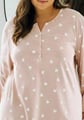 Dámská noční košile Nori 3469 značky TARO přináší spojení elegance a pohodlí do Vašeho večerního rituálu. Tento model v jemné pastelově růžové barvě s hravým vzorem bílých srdíček působí lehce a příjemně. Dlouhé rukávy s mírně rozšířenými manžetami a měkký véčkový výstřih s knoflíkovou légou zajišťují maximální komfort i snadné oblékání. Lehký materiál ze 100% bavlny je prodyšný a šetrný k pokožce, což oceníte při odpočinku i spánku. Košile je ideální volbou pro každodenní domácí pohodu a relaxaci.