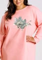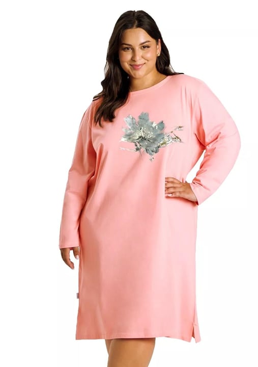 Dámská noční košile Patricia 3472/3473/51 značky TARO přináší do Vašeho domova spojení elegance a pohodlí. Jemný pastelově růžový odstín vynikne v každém šatníku, zatímco volný střih s dlouhými rukávy a kulatým výstřihem zajišťuje maximální komfort při odpočinku i spánku. Decentní grafický motiv akvarelových listů na přední straně působí vkusně a dodává celé košili lehký nádech originality. Díky mírným rozparkům po stranách se budete cítit uvolněně i při pohybu doma.