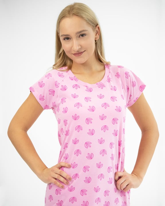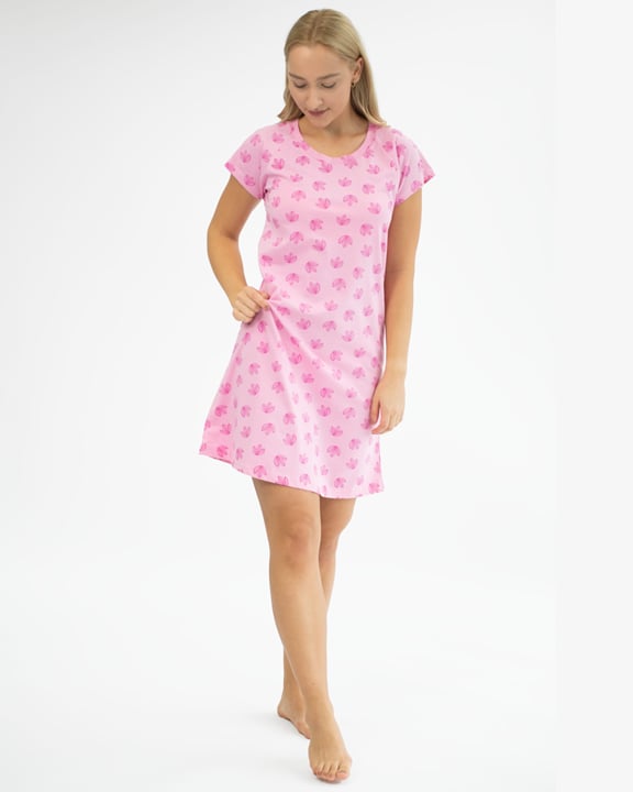 Základem kvalitního spánku je vaše pohodlí, ke kterému vám pomůže i pohodlné noční prádlo. Naše dámská noční košilka s krátkým rukávem je ideální volbou pro každou milovnici kvalitních materiálů a pohodlných střihů. Noční košilka má délku po kolena, elegantní květinový vzor, kruhový výstřih, který neškrtí a materiál ze 100% bavlny - ten vám zajistí komfort po celou noc. Bude se vám v ní spát doslova jako v bavlnce.