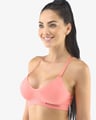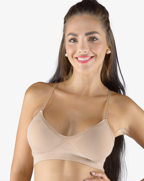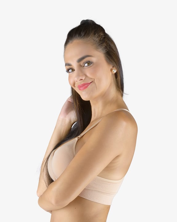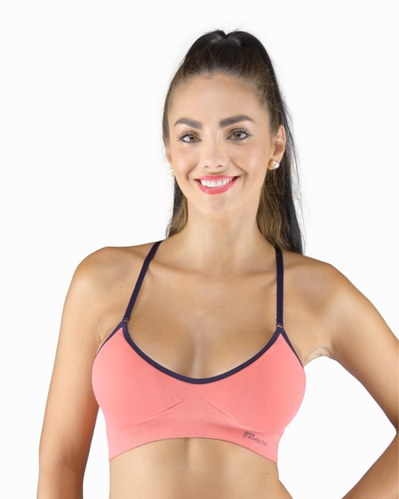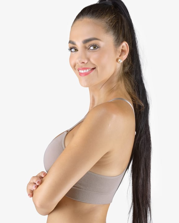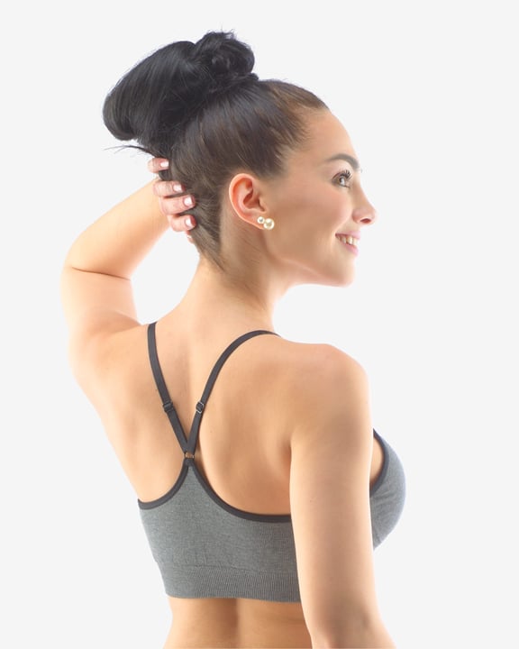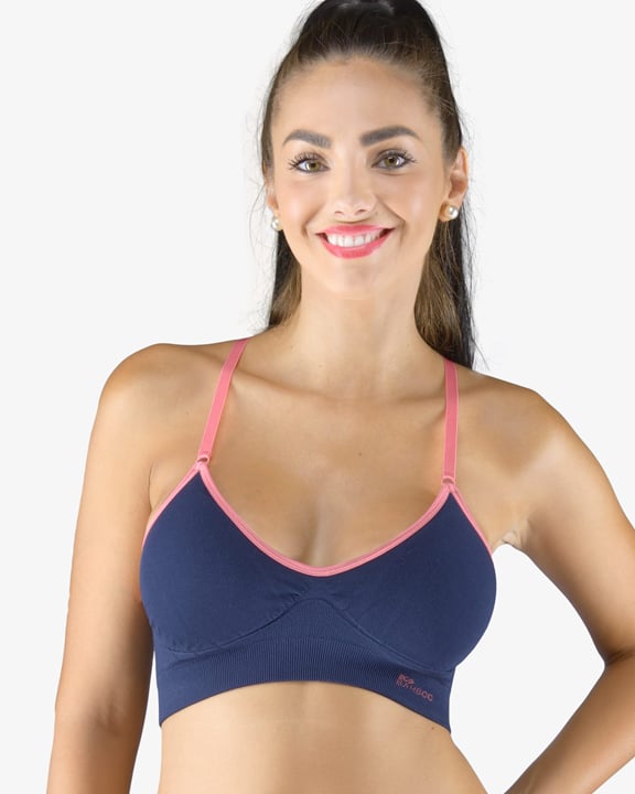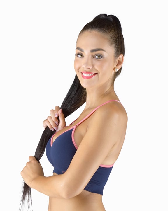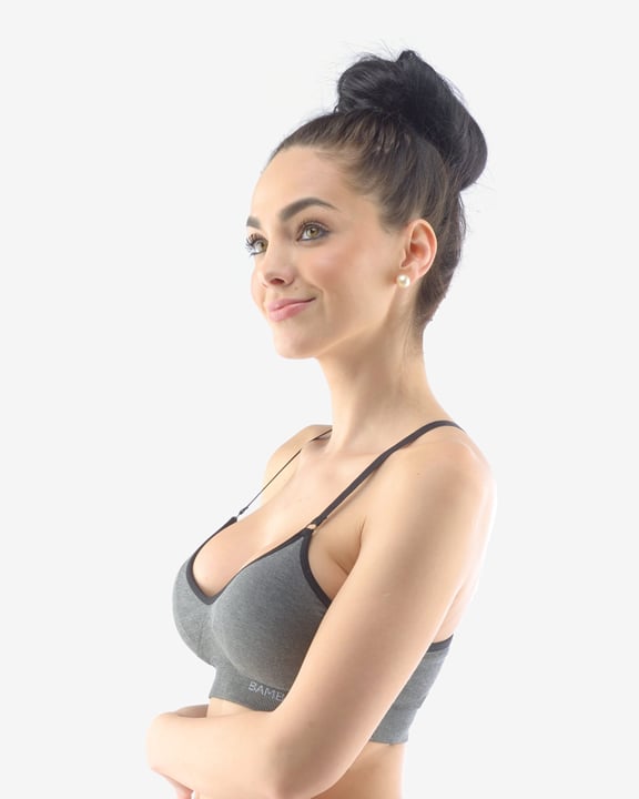 GINA 07020P je podprsenka bez kostic s vyjímatelnými vycpávkami a nastavitelnými ramínky, dámské bezešvé sportovní prádlo. Dolní kraj je zesílený a zapravený bezešvým způsobem. Horní kraj je zapravený lemovkou. Přední díl je dvojitý a mezi vnější a vnitřní část jsou vloženy lisované košíčky. Zadní díl je v celku. Ramínka jsou nastavitelná, na zadním díle jsou pomocí kroužku umístěna uprostřed. Podprsenka je jednobarevná. V záložce je vypletené logo.