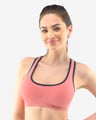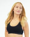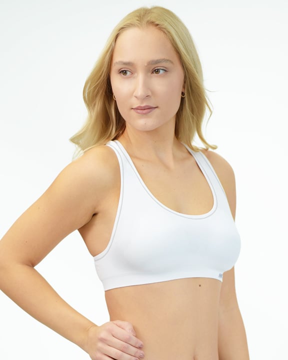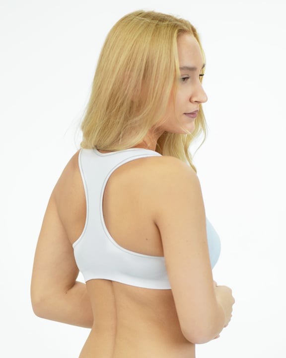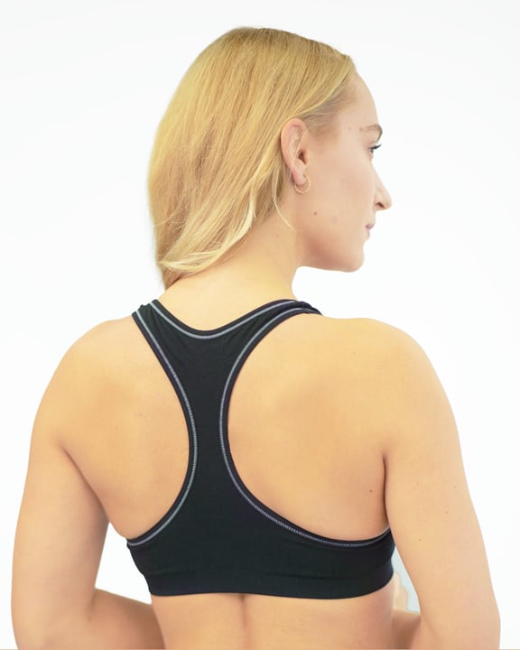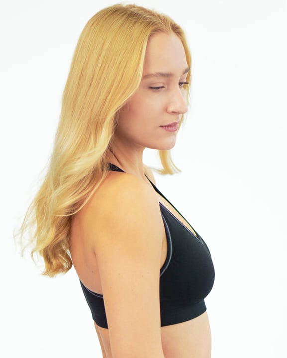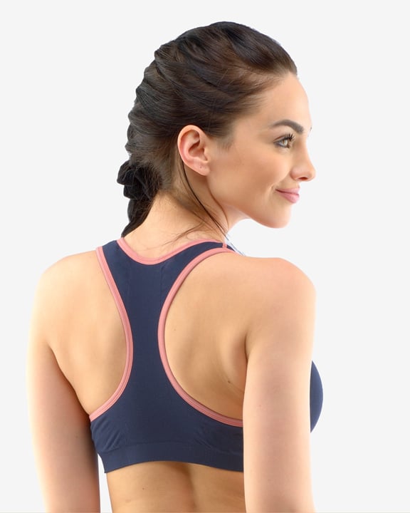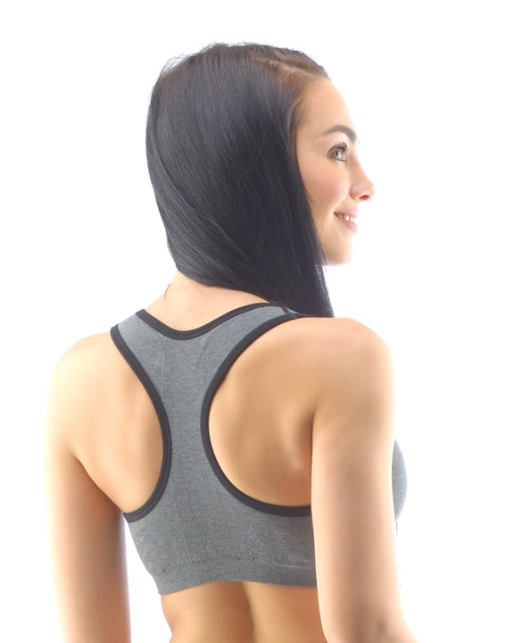 GINA 07018P je podprsenka bez kostic s vyjímatelnými vycpávkami, dámské bezešvé sportovní prádlo. Dolní kraj je zesílený a zapravený bezešvým způsobem. V průramcích a průkrčníku je zašitá úzká pruženka. Přední díl je dvojitý a mezi vnější a vnitřní část jsou vloženy lisované košíčky. Ramínka na zadním díle jsou do kříže. Podprsenka je jednobarevná. V záložce je vypletené logo v šedé barvě.