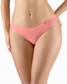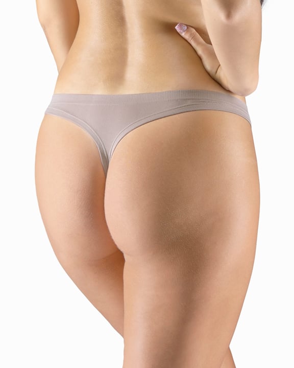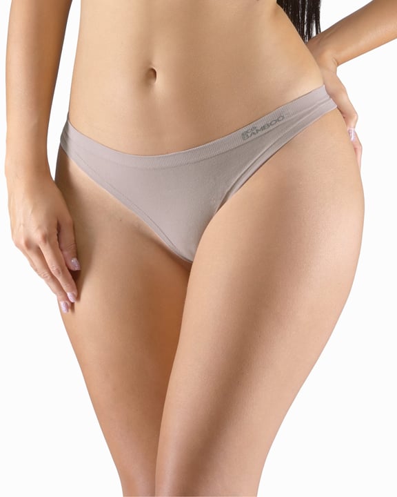 GINA 05013P jsou tanga s úzkým bokem, dámské bezešvé bambusové prádlo. Pasový kraj je zesílený a zapravený bezešvým způsobem.Nohavičky jsou začištěné podehnutím. Kalhotky jsou jednobarevné. V záložce je vypletené logo v šedé barvě.