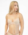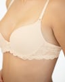 GINA 17006P je podprsenka s kosticemi a lisovanými košíčky, dámské šité prádlo. Košíčky jsou hladké. Zadní díl je tvořený krajkou. Ramínka jsou nastavitelná. Podprsenka je jednobarevná. Zapínání je třířadé na 2 háčky.