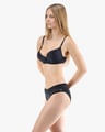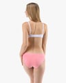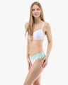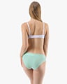 Dámské bokové kalhotky se širokým bokem GINA 16181P jsou dámské šité bokové kalhotky se širším bokem a se širším pasovým lemem. Pasový kraj je začištěný širším lemem ze stejného materiálu. Nohavičky bavlněných kalhotek jsou začištěné úzkým lemem ze stejného materiálu. Přední díl je potištěný. Zadní díl a lemy jsou jednobarevné.