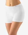 GINA 03016 jsou dámské, šité kalhotky s delší nohavičkou, boxerky. Pasový kraj je zesílený a zapravený bezešvým způsobem. Nohavičky jsou zapravené bezešvým způsobem. V rozkroku je všitý klínek. Kalhotky jsou jednobarevné. V záložce je vypletené logo v šedé barvě.