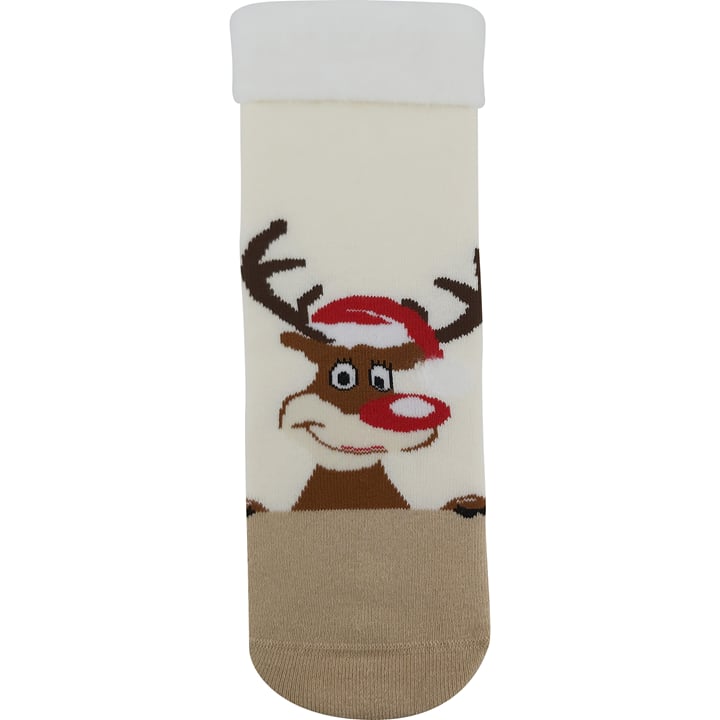 Dámské celofroté ponožky LONKA MEDEA jsou teplé celofroté ponožky s kontrastním ohrnovacím lemem z jemné příze, ideální na předvánoční a vánoční období. Silné ponožky s obrázkem sobíka vyladí zaručeně tu správnou vánoční atmosféru! Zapomeňte na stres a vykouzlete úsměv na tváři sobě nebo svým nejbližším a pořiďte si sobí ponožky. Kontrastní heboučký lem můžete efektně ohrnout nebo ponožky můžete nechat jen tak vytažené. Zimní ponožky mají řetízkovanou špici, spoj je tedy hladký a plochý, a nehrozí Vám tak otlaky nebo puchýře.