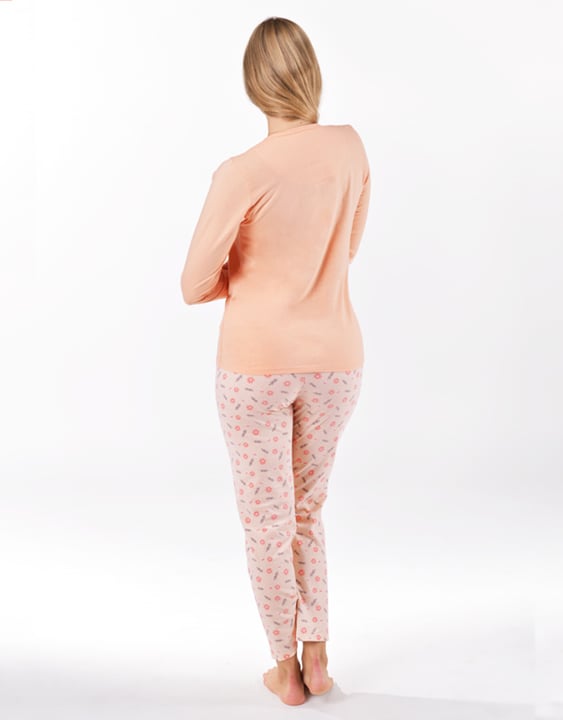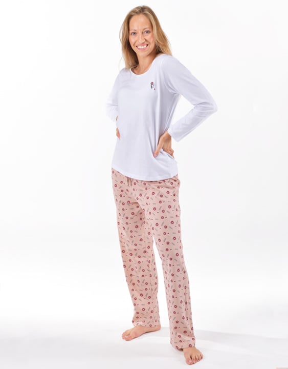 Dámské dlouhé pyžamo GINA 19167P je dámské pyžamo volného střihu z jemného úpletu a ze 100% bavlny. Dlouhé pyžamo s jemným vzorem Vám poskytne naprosté pohodlí během spánku a třeba i na domácí lelkování.