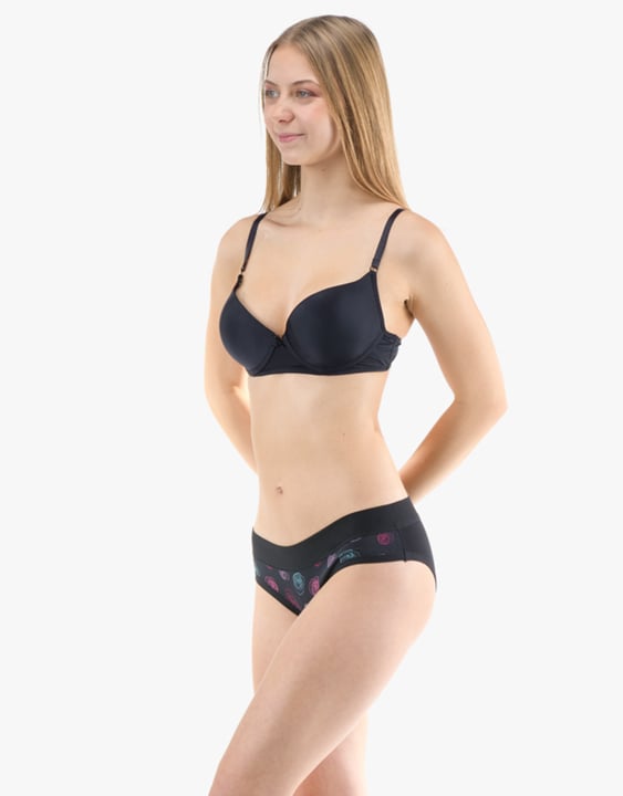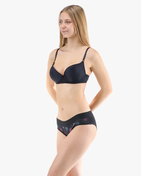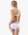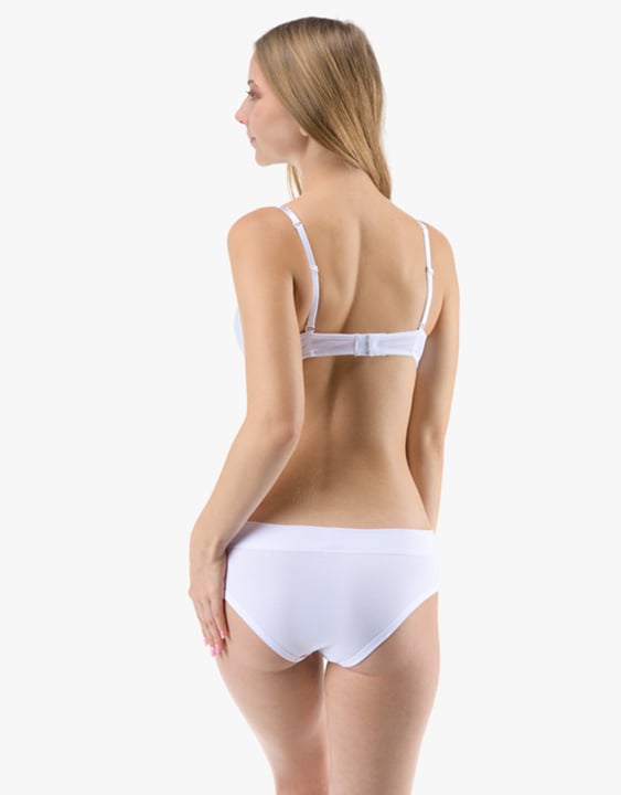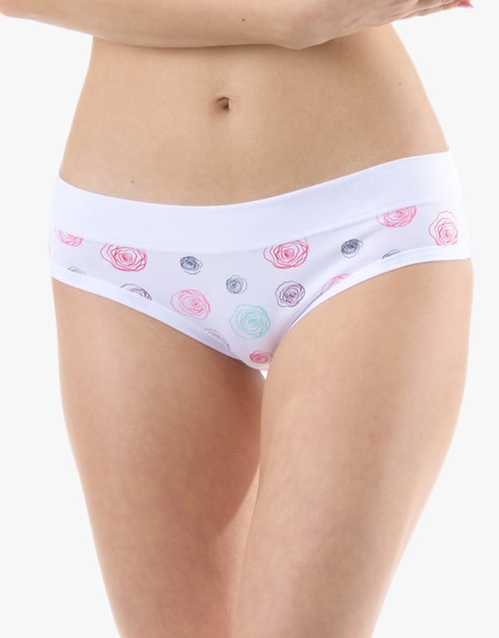 Dámské francouzské kalhotky GINA 14162P jsou dámské šité bokové kalhotky francouzského střihu se širokým bokem a širším pasovým lemem. Pasový kraj je začištěný širším lemem ze stejného materiálu. Nohavičky bavlněných kalhotek jsou začištěné úzkým lemem bze stejného materiálu. Lemy v pase a v nohavičkách jsou potištěné, přední a zadní díl je jednobarevný.