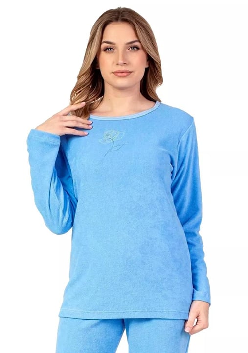 Dámské froté pyžamo 677/52 značky REGINA přináší do Vašeho domova pocit lehkosti a elegance. Tento dvoudílný set je navržen s důrazem na pohodlí i styl – volný střih a kulatý výstřih zajišťují maximální komfort při nošení. Výšivka na hrudi dodává pyžamu osobitost, aniž by narušila jeho nadčasový vzhled. Dlouhé kalhoty s rovnými nohavicemi a elastickým pasem umožňují volnost pohybu, což oceníte nejen během spánku, ale i při domácím odpočinku.