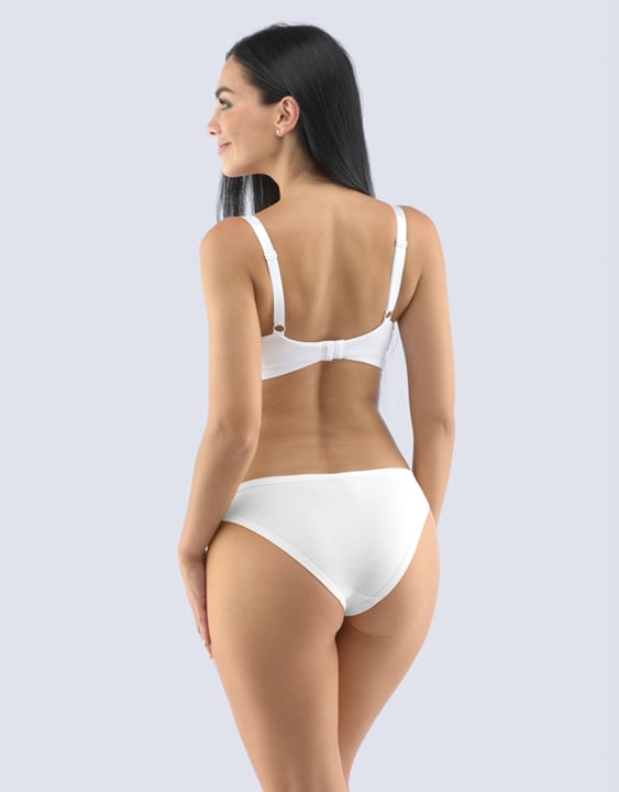 Dámské kalhotky bokové - brazilky GINA 16161P jsou bokové kalhotky s úzkým bokem, brazilky, dámské šité prádlo. Pasový kraj je začištěný úzkým lemem ze stejného materiálu. Nohavičky jsou začištěné úzkým lemem ze stejného materiálu. Kalhotky jsou jednobarevné.