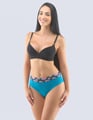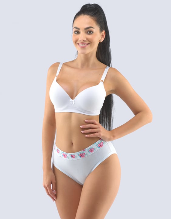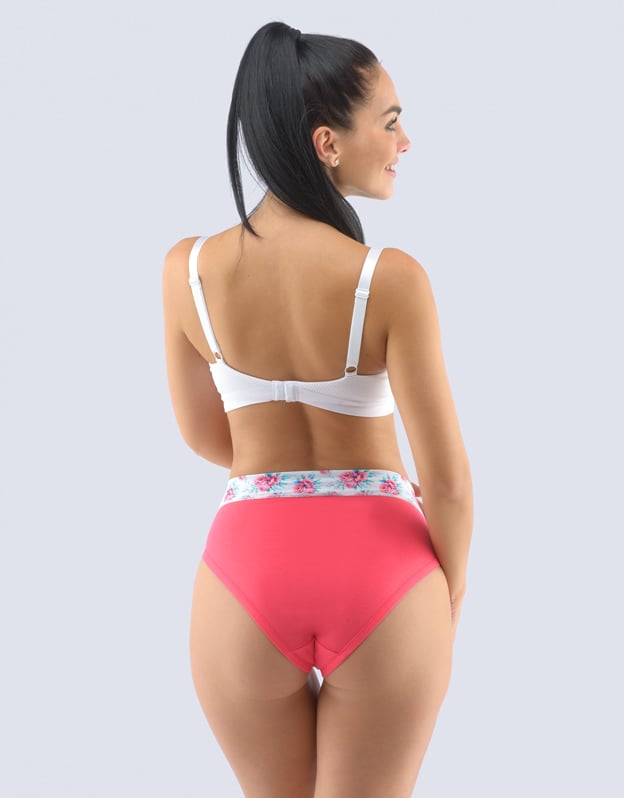 Dámské kalhotky klasické GINA 10251P jsou kalhotky klasického střihu se širším pasovým lemem, dámské šité prádlo. Pasový kraj je začištěný širším lemem ze stejného materiálu. Nohavičky jsou začištěné úzkým lemem ze stejného materiálu. Pasový lem je potištěný. Přední a zadní díl a lemy nohaviček jsou jednobarevné.