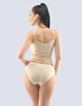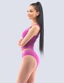 GINA Bamboo 00023P jsou dámské, bambusové kalhotky klasického střihu se širším bokem. Pasový kraj je zesílený a zapravený bezešvým způsobem. V nohavičkách je zašitá úzká pruženka. Kalhotky jsou jednobarevné. V záložce je vypletený barevný proužek a logo.