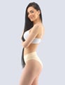 Dámské kalhotky klasické s úzkým bokem GINA 10252P ksou kalhotky klasického střihu s úzkým bokem a širším pasovým lemem, dámské šité prádlo. Pasový kraj je začištěný širším lemem ze stejného materiálu. Nohavičky jsou začištěné úzkým lemem ze stejného materiálu. Kalhotky jsou jednobarevné.