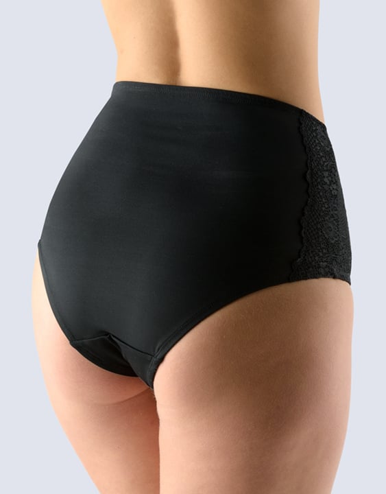 GINA 10204P jsou dámské, šité kalhotky klasického střihu se širším bokem a vyšším pasem. V pasovém kraji je zašitá úzká pruženka. V nohavičkách je zašitá úzká pruženka. Kalhotky jsou zdobené krajkou, která je našitá na bocích předního i zadního dílu. Kalhotky jsou jednobarevné.