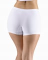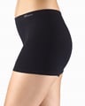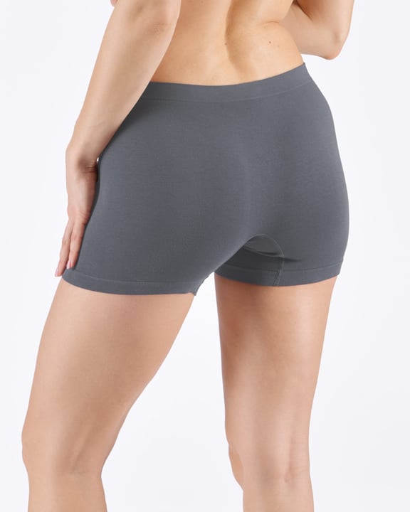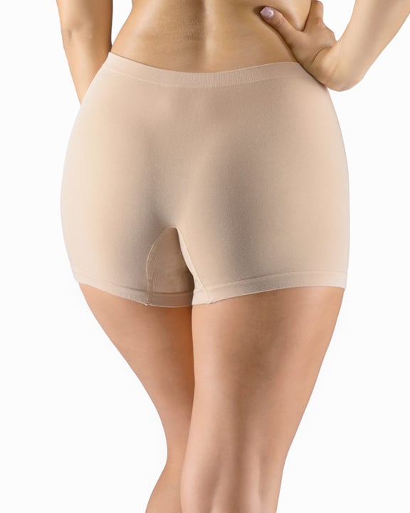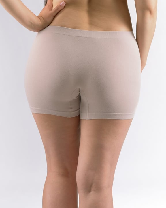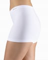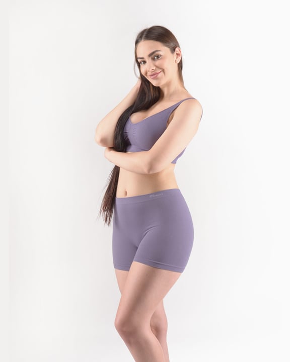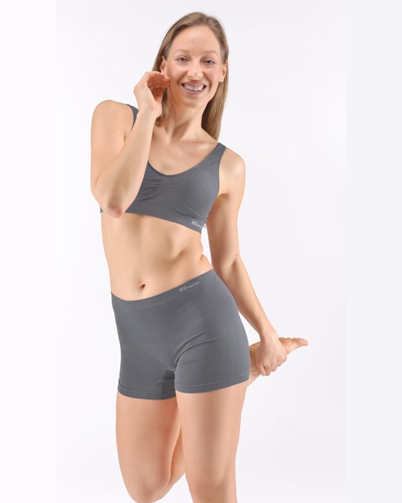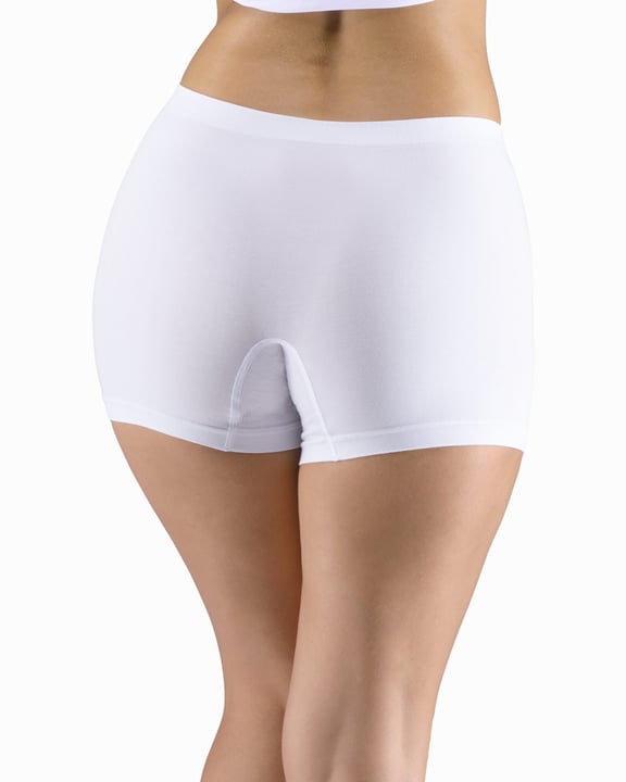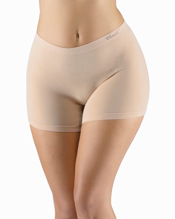 Dámské kalhotky s nohavičkou GINA 03018P jsou kalhotky s delší nohavičkou, boxerky, dámské bezešvé prádlo. Pasový kraj je zesílený a zapravený bezešvým způsobem. Nohavičky jsou zapravené bezešvým způsobem. V rozkroku je všitý klínek. Kalhotky jsou jednobarevné. V záložce je vypletené logo.