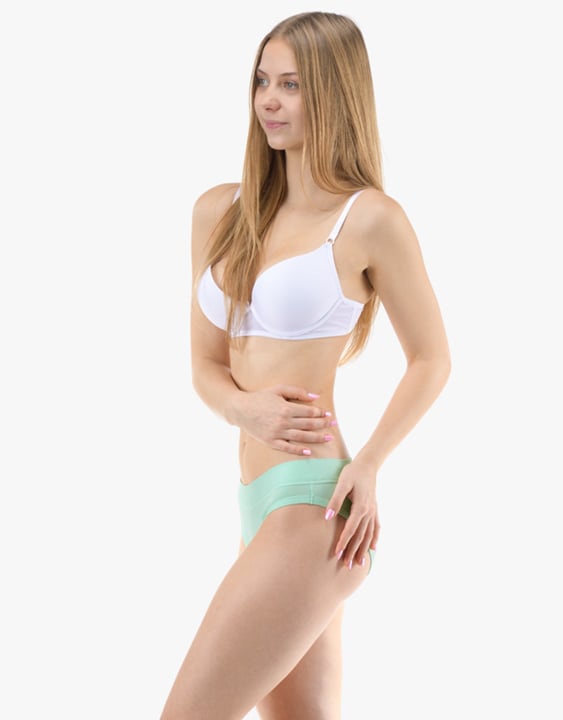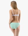 Dámské kalhotky s širokým bokem GINA 16152P jsou bokové kalhotky se širším bokem, bokovky, a se širším pasovým lemem, dámské šité prádlo. Pasový kraj je začištěný širším lemem ze stejného materiálu. Nohavičky jsou začištěné úzkým lemem ze stejného materiálu. Kalhotky jsou jednobarevné.