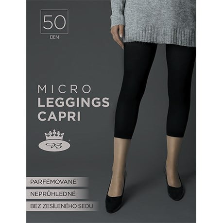 Dámské kamaše MICRO capri 50 DEN Dámské punčochové legíny v kratší CAPRI délce z mikrovkákna MICRO leggins capri 50 DEN v módní černé barvě doplní každý dámský šatník. Legíny skvěle padnou díky materiálové kombinaci polyamidu s příměsí elastanu. Potěší také parfémování a kvalitní úplet, se kterým budete maximálně spokojeni. Dodáváme balené v samostatném sáčku a obálce. malý klín (ve velikosti XXL velký klín)