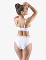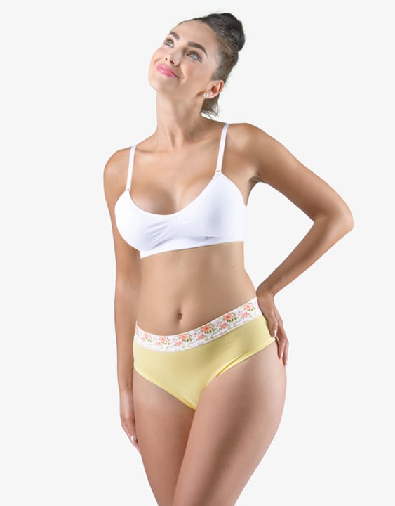 Dámské klasické kalhotky GINA 10278P josu kalhotky klasického střihu se širším pasovým lemem. Pasový kraj je začištěný širším lemem ze stejného materiálu, drobí ho květinový vzor. Nohavičky jsou začištěné úzkým lemem ze stejného materiálu.