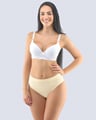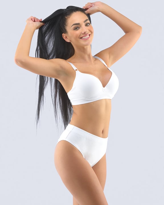 Dámské klasické kalhotky GINA 10285P jsou kalhotky klasického střihu, dámské šité prádlo. V pasovém kraji je zašitá širší pruženka. V nohavičkách je zašitá úzká pruženka. Kalhotky jsou jednobarevné.