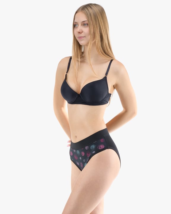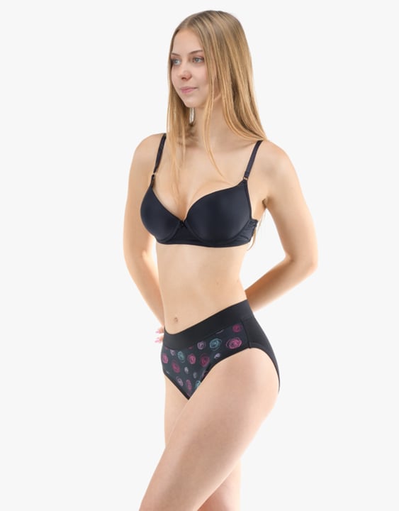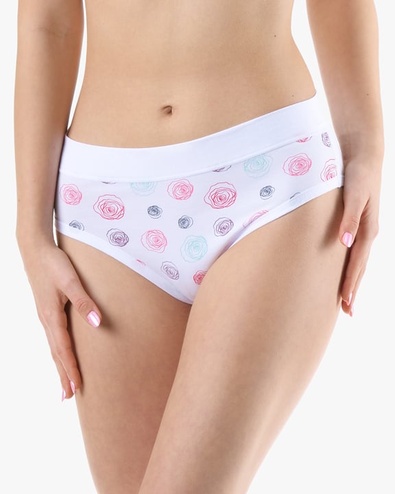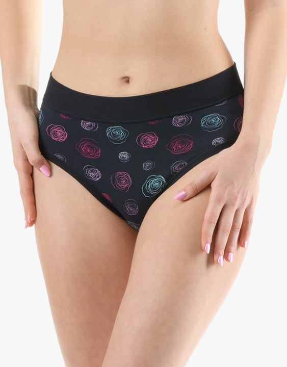 Dámské klasické kalhotky GINA 10292P jsou dámské šité kalhotky klasického střihu se širším pasovým lemem. Pasový kraj je začištěný širším lemem ze stejného materiálu. Nohavičky jsou začištěné úzkým lemem ze stejného materiálu. Přední díl je jednobarevný, lemy v pase a v nohavičkách jsou potištěné.