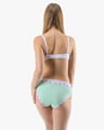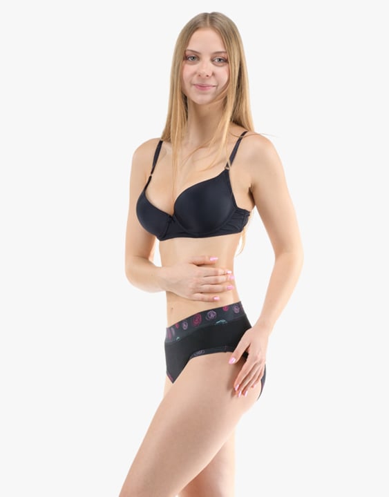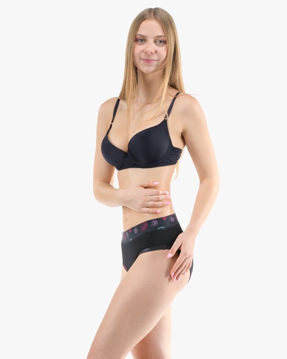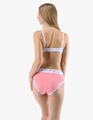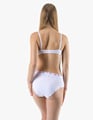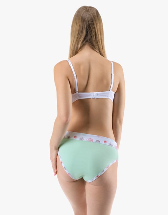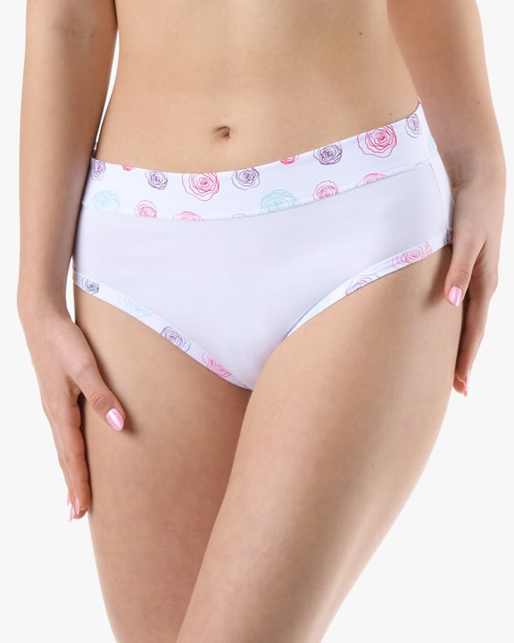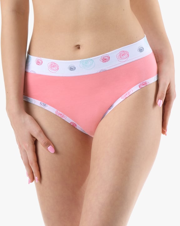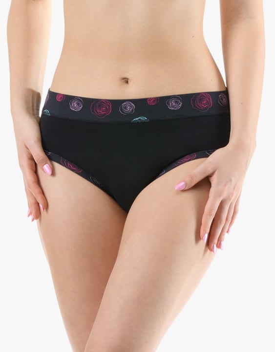 Dámské klasické kalhotky GINA 10293P jsou dámské šité kalhotky klasického střihu se širším pasovým lemem. Pasový kraj je začištěný širším lemem ze stejného materiálu. Nohavičky jsou začištěné úzkým lemem ze stejného materiálu. Přední díl je jednobarevný, lemy v pase a v nohavičkách jsou potištěné.