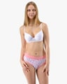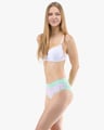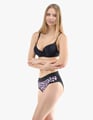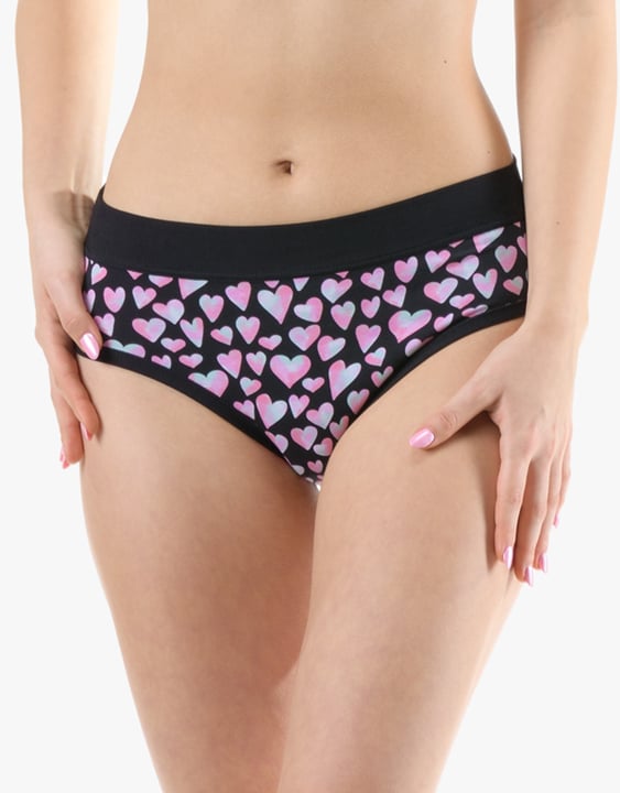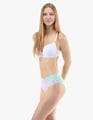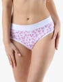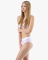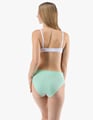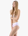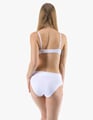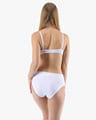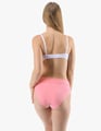 Dámské klasické kalhotky GINA 10294P jsou dámské šité kalhotky klasického střihu se širším pasovým lemem. Pasový kraj je začištěný širším lemem ze stejného materiálu. Nohavičky jsou začištěné úzkým lemem ze stejného materiálu. Přední díl je jednobarevný, lemy v pase a v nohavičkách jsou potištěné.