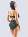 Dámské klasické kalhotky GINA 11074P jsou kalhotky klasického střihu se širším bokem v nadměrných velikostech, dámské šité prádlo. V pasovém kraji je zašitá úzká pruženka. V nohavičkách je zašitá úzká pruženka. Kalhotky jsou potištěné.
