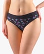 Dámské klasické kalhotky s úzkým bokem GINA 10273P jsou kalhotky klasického střihu s úzkým bokem a širším pasovým lemem, dámské šité prádlo. Pasový kraj je začištěný širším lemem ze stejného materiálu. Nohavičky jsou začištěné úzkým lemem ze stejného materiálu. Přední díl je potištěný. Zadní díl a lemy jsou jednobarevné.