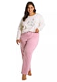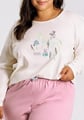 Dámské nadměrné pyžamo Monica 3470 značky TARO představuje dokonalou kombinaci pohodlí a stylu pro každou ženu, která si cení kvalitního domácího oblečení. Horní díl v jemném krémovém odstínu zaujme hravým grafickým potiskem s botanickými motivy, které přinášejí svěží a uvolněnou atmosféru. Dlouhé rukávy a volnější střih zajišťují maximální komfort během celého večera i noci. Spodní díl v pastelově růžové barvě je vybaven elastickým pasem a rovně střiženými nohavicemi, což umožňuje volnost pohybu a příjemný pocit při nošení.