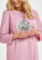 Dámské noční košile Patricia 3461/52 značky TARO přináší spojení elegance a pohodlí do Vašeho večerního rituálu. Jemný pastelově růžový odstín působí uklidňujícím dojmem, zatímco dlouhé rukávy zajišťují příjemné teplo po celý rok. Volnější střih s decentními bočními rozparky nabízí volnost pohybu i při odpočinku. Kulatý výstřih podtrhuje ležérní charakter této noční košile, která je zdobena svěžím květinovým motivem na přední straně – dodává šatům ženskost a nádech přírody.