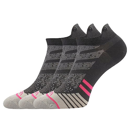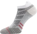 Dámské ponožky VoXX REX 17 jsou dámské nízké tenké sportovní ponožky, které se hodí jak na celodenní nošení, tak i na letní indoorové a outdoorové aktivity. Slabé ponožky s vyšším podílem bavlny pro dobrý odvod vlhkosti mají navíc prodyšnou zónu na nártu a jemný nestahující lem. Aby se v obuvi nepřetáčely, okolo nártu mají elastickou zónu, držící ponožky na svém místě. Slabé ponožky mají špici uzavřenou řetízkováním, takže nikde netlačí. Ponožky jsou dostupné v teplotní třídě A, vhodné do rozmezí teplot od +10°C do +35°C.