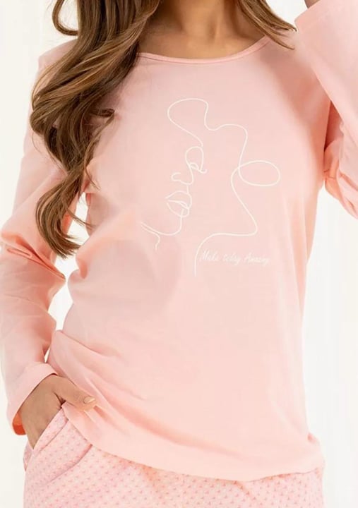 Dámské pyžamo 704/52 značky REGINA přináší dokonalou kombinaci elegance a pohodlí, kterou si zamilujete při každém večerním odpočinku. Měkký pastelově růžový odstín vytváří jemný, uklidňující dojem a lehký materiál poskytuje pocit vzdušnosti po celou noc. Dlouhý rukáv s kulatým výstřihem spolu s volnými kalhotami na gumu zajistí maximální komfort i volnost pohybu. Pečlivě vybraná 100% bavlna je příjemná k pokožce a snadno se udržuje, což oceníte nejen během spánku, ale i při domácím lenošení.