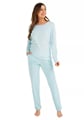 Dámské pyžamo 704/53 značky REGINA přináší spojení elegantního stylu a pohodlí, které si zamilujete při každodenním odpočinku. Vrchní díl v jemném pastelově modrém odstínu s dlouhými rukávy a kulatým výstřihem působí vzdušně a příjemně na dotek. Spodní kalhoty ve stejném barevném tónu zdobí decentní geometrický vzor, který dodává celku moderní nádech. Elastický pas zajišťuje volnost pohybu i maximální komfort během spánku či relaxace doma. Celý komplet je vyroben ze 100% bavlny, což garantuje prodyšnost, měkkost a šetrnost k pokožce.