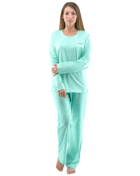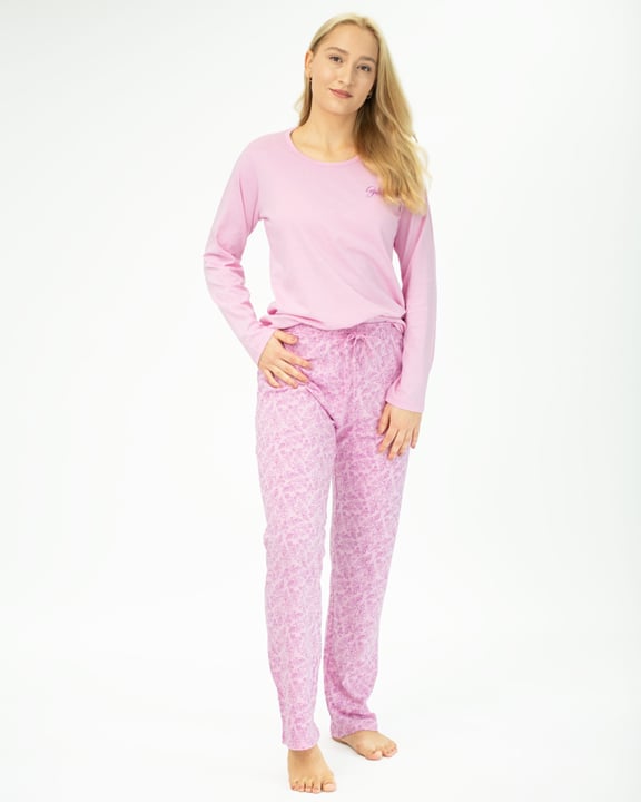 Základem kvalitního spánku je vaše pohodlí, ke kterému vám pomůže i pohodlné noční prádlo. Naše dámské pyžamo s dlouhým rukávem a dlouhými volnými kalhotami potěší každou milovnici pohodlí a přírodních materiálů, protože je celé ušito ze 100% bavlněného úpletu, díky kterému se vám bude v něm spát doslova jako v bavlnce. Neztratí se vám ani jako domácí oblečení, jelikož je vhodné pro každodenní nošení.