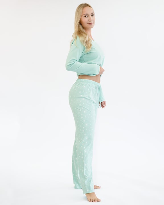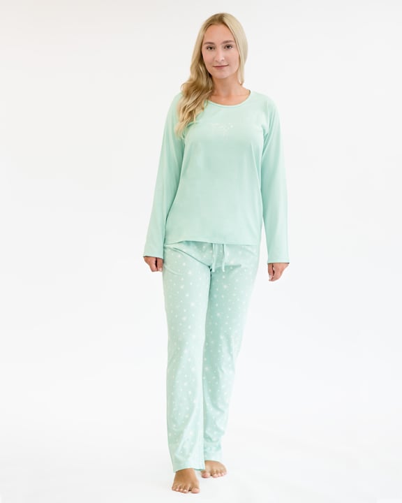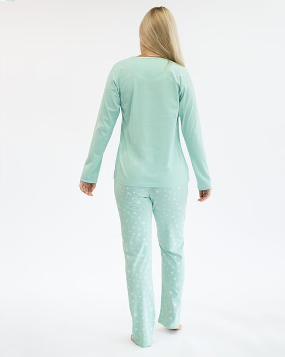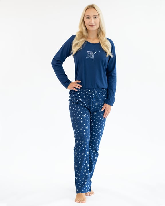 Dámské pyžamo dlouhé GINA 19161P je dámské pyžamo volného střihu z jemného úpletu, které Vám poskytne pohodlí během spánku a třeba i na domácí lelkování.