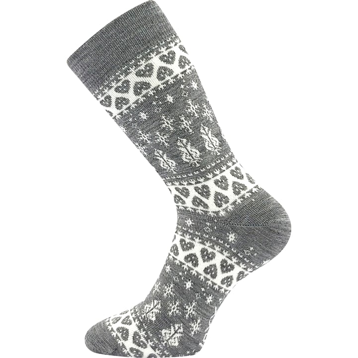 Dámské silné ponožky VoXX ZIMONA jsou velmi jemné a teplé ponožky s froté uvnitř. Pohodlný hladký úplet s volným lemem nohy nestahuje a neškrtí. Jemný norský design zdobí navíc malá srdíčka. Hřejivé ponožky v teplotní třídě C jsou ideální pro chladnější období od -20°C až do +5°C.