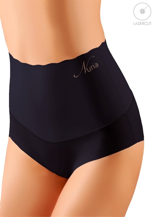 Dámské stahující kalhotky se zvýšenou linii pasu. Okraj kalhotek byl vytvořen speciální laserovou technologií. Díky tomu se kalhotky na koncích netřepí a nemusí být začištěny švem. Toto spodní prádlo není vidět pod svrchním oděvem. Vnitřní část rozkroku kalhotek je podšita bavlněnou látkou.