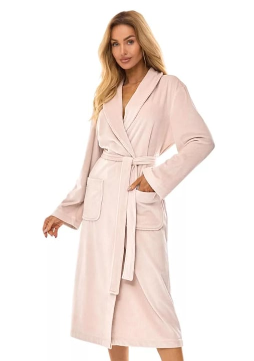 Dámský župan Gil long angora značky L&L představuje dokonalou volbu pro ženy, které hledají spojení pohodlí a elegance. Tento župan v jemném odstínu angora je vyroben z mimořádně hebkého materiálu Wellsoft, který Vás zahalí do příjemného pocitu lehkosti a relaxace. Díky dlouhému střihu s límcem působí velmi sofistikovaně, zatímco praktické zavazování v pase umožňuje přizpůsobit si obvod přesně podle Vašich potřeb. Dva prostorné kapsy na přední straně jsou ideální pro uložení drobností nebo zahřátí rukou během chladnějších večerů.