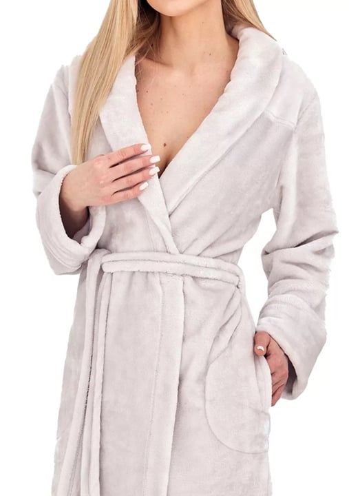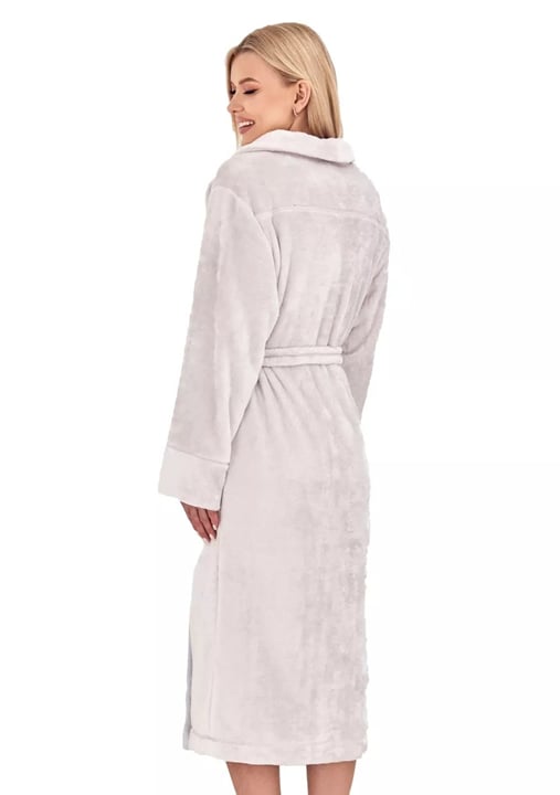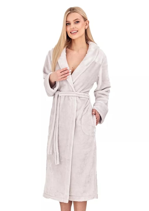 Dámský župan Sky long crystal značky L&L je synonymem pro pohodlí a elegantní domácí styl. Jeho jemný, neutrální odstín se snadno kombinuje s dalšími kousky Vašeho šatníku a vytváří harmonický dojem v každém interiéru. Měkký materiál Wellsoft Vás zahalí do příjemného tepla, zatímco hladká textura zaručuje maximální komfort při každém dotyku s pokožkou. Praktický střih nabízí dostatečné krytí i volnost pohybu – ideální pro chvíle odpočinku po koupeli nebo během relaxace doma. Široký límec dodává županu nádech noblesy a zavazování v pase umožňuje individuálně přizpůsobit tvar postavy. Dvě prostorné kapsy oceníte na drobnosti i zahřátí rukou.