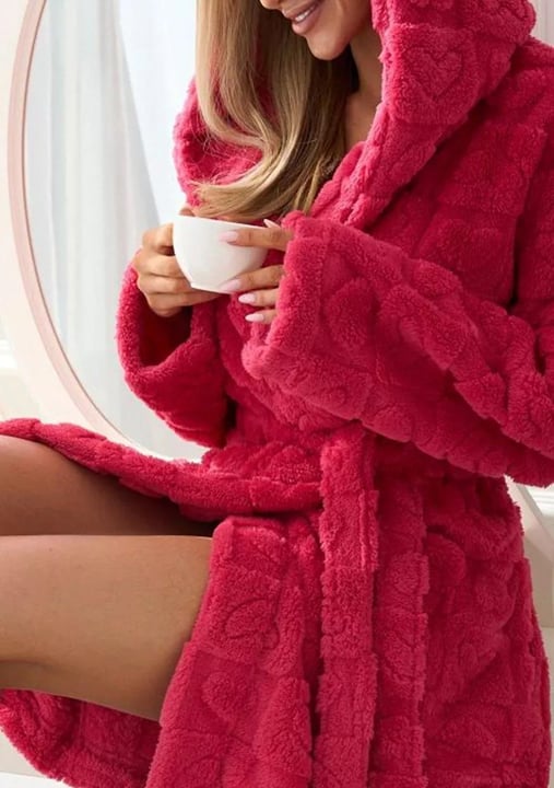 Srdcový vzor na povrchu dodává županu hravost, kterou oceníte při každém oblékání. Tento model je navržen bez krajky pro čistý vzhled a maximální komfort při nošení doma po koupeli nebo během odpočinku.